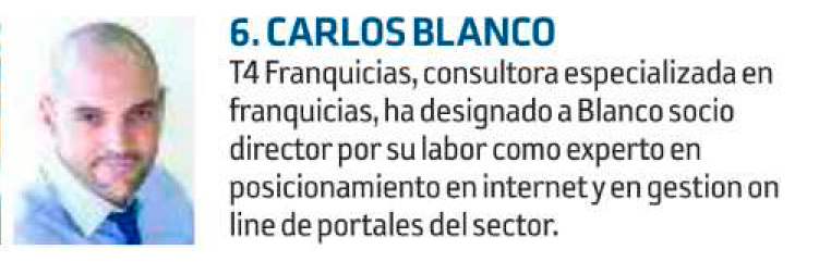 T4 Franquicias, consultora especializada en franquicias, ha designado a Carlos Blanco socio director por su labor como experto en posicionamiento en Internet y en gestión online de portales del sector.
